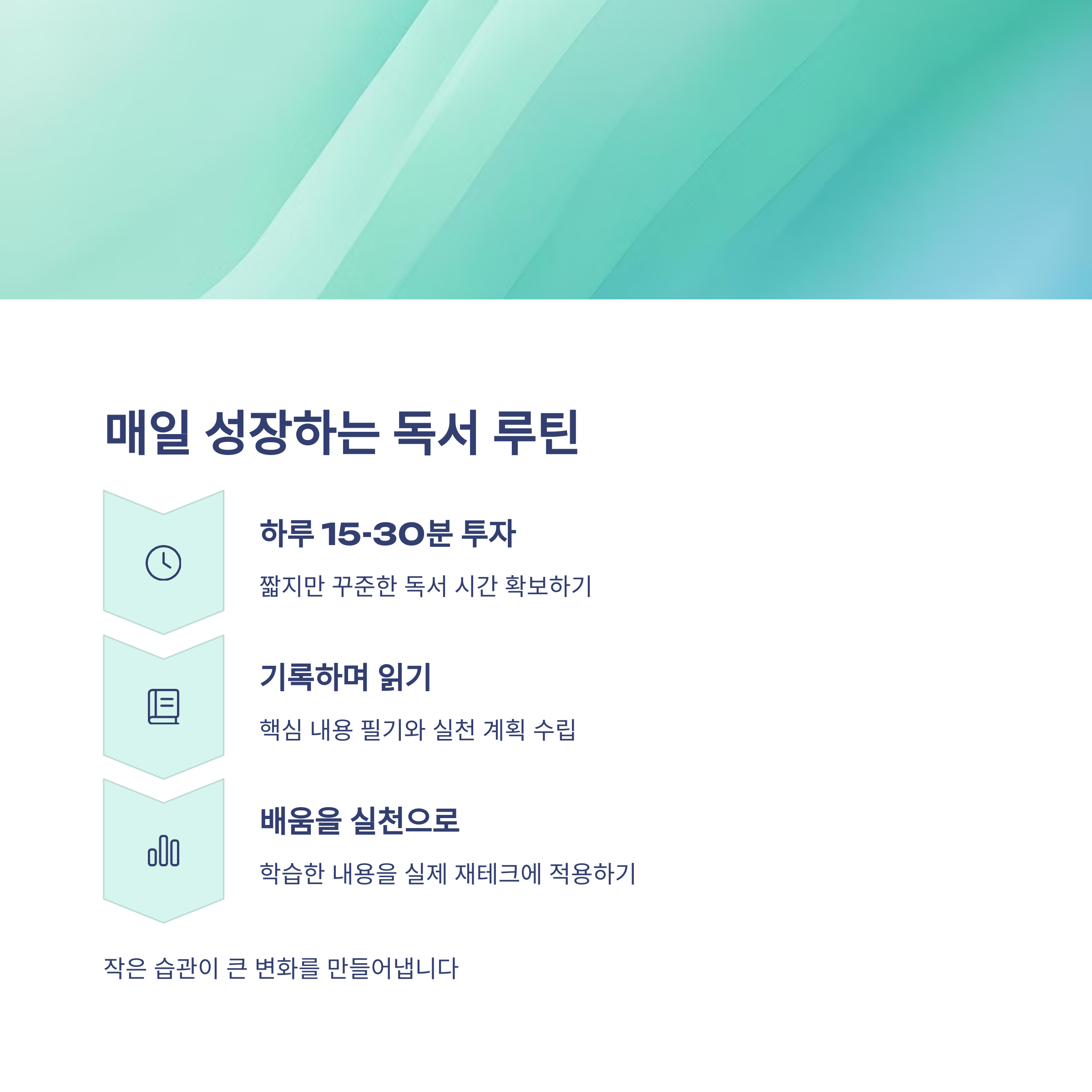 가장 중요한 점은 꾸준함입니다. 하루 10분이라도 재테크 도서를 읽는 습관을 들이게 되면 1년 후 나의 재정적 사고는 완전히 달라질 수 있습니다. 책을 통해 배운 내용을 기록해두고, 자신만의 독서-실천 루틴을 만들면 매달 조금씩 재정 상태가 개선되는 변화를 경험하게 됩니다. 이런 과정을 반복하다 보면 ‘독서 → 실행 → 성장’이라는 자연스러운 흐름이 자리잡게 됩니다.